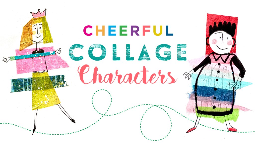 Cheerful Collage Characters, is a 14 minute class on creating eclectic and playful characters using paper scraps and markers, crayons or colored pencils. Make one, make two, or make three, but whatever you do, keep it silly!